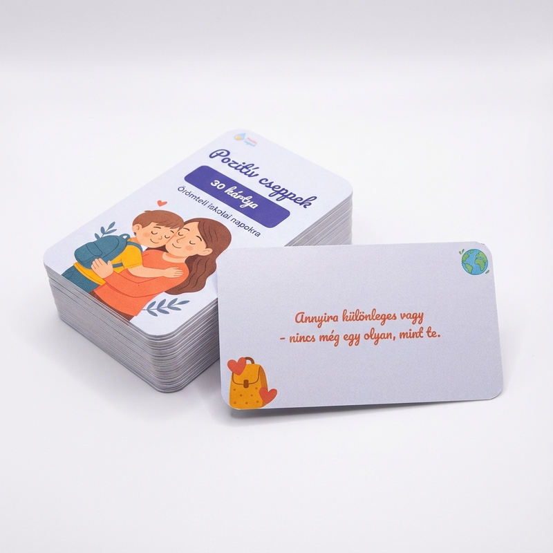 Büszkévé tesz, hogy olyan termékeket készítünk, amelyek valódi változást hoznak a családok életébe. A Pozitív Cseppek kártyái nem csak szépek, hanem valóban segítenek, hiszen mert minden gyermek megérdemli, hogy érezze: értékes és szeretett.